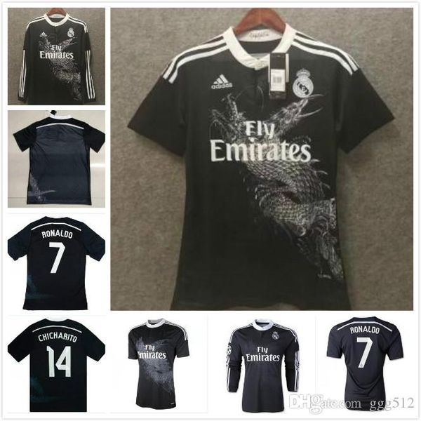 Em imagens que circulam na internet um suposto terceiro uniforme do real madrid tem como destaque a marca dagua de um dragao na parte da frente da camisa que e preta com detalhes brancos. Ate mesmo o simbolo do time merengue abandona as cores originais e adota o preto e branco. Aproveite o frete gratis pelo mercado livre brasil.