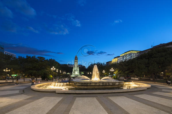 Night Light Reflections In Fountain Plaza De Espana Madrid