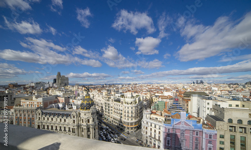 Panoramic Aerial View Of Gran Via Main Shopping Street In Madrid