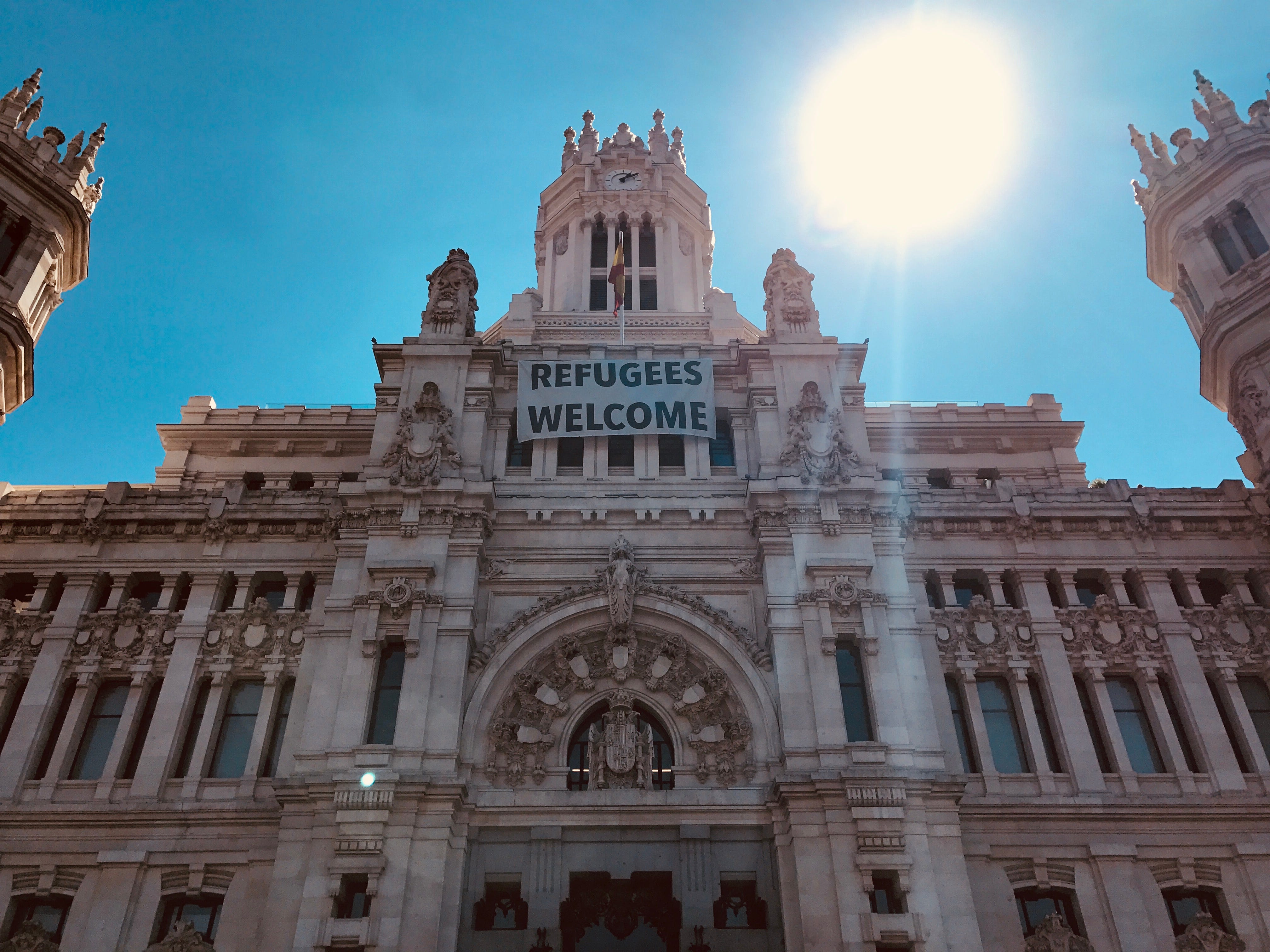 Low Angle View Of Madrid City Hall Against Blue Sky Palacio