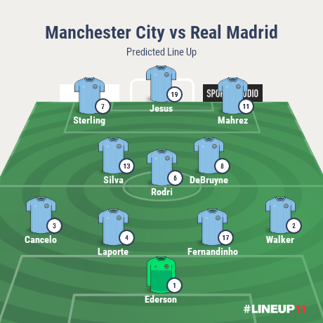 City won first leg 2 1. Real madrid vs man. Starting line ups in the uefa champions league last 16 second leg between manchester city and real madrid at the etihad stadium on friday kick off 1900 gmt.
