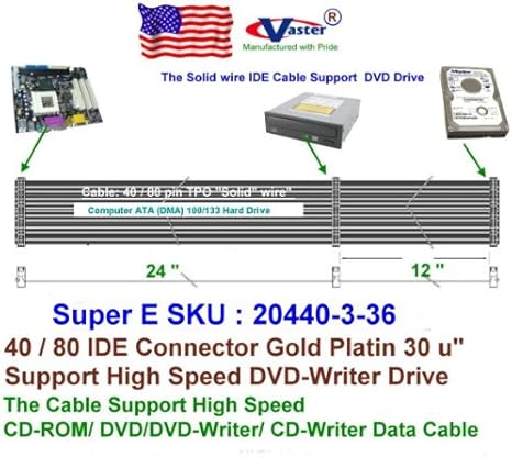 Amazon Com Ide Ata 40 80 Flat Ribbon Data Cable 2 Drive 36 www.amazon.com