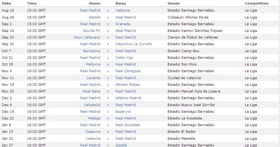 Laliga Fixture Of Real Madrid 2019 20 Real Madrid Fan Club
