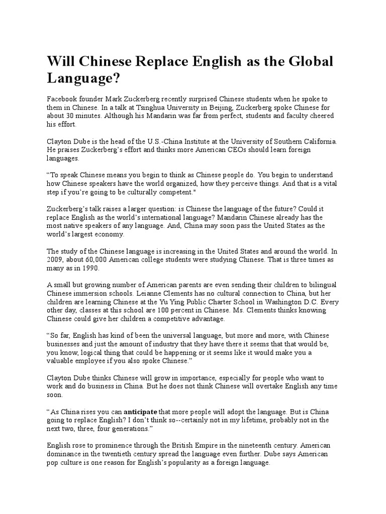 English Vs Mandarin Chinese The Fight For The Global Reign