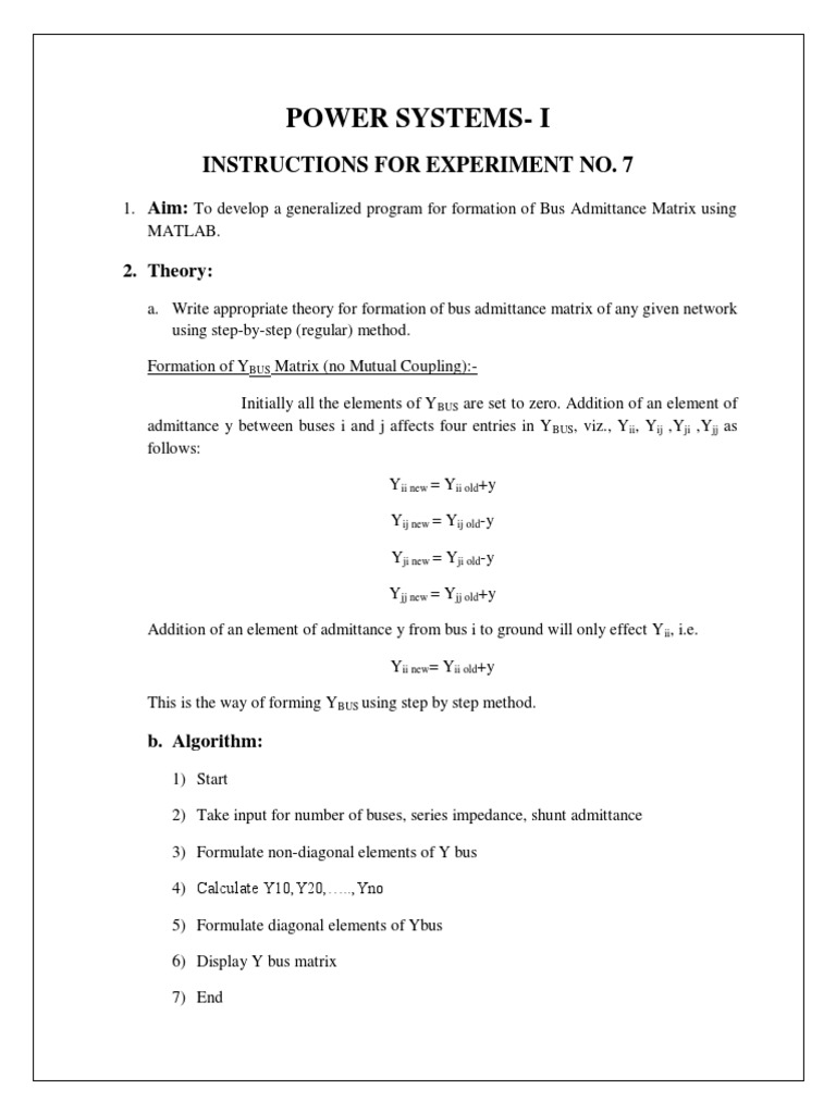 Y Bus Load Flow Bus Admittance Matrix Step By Step Formation